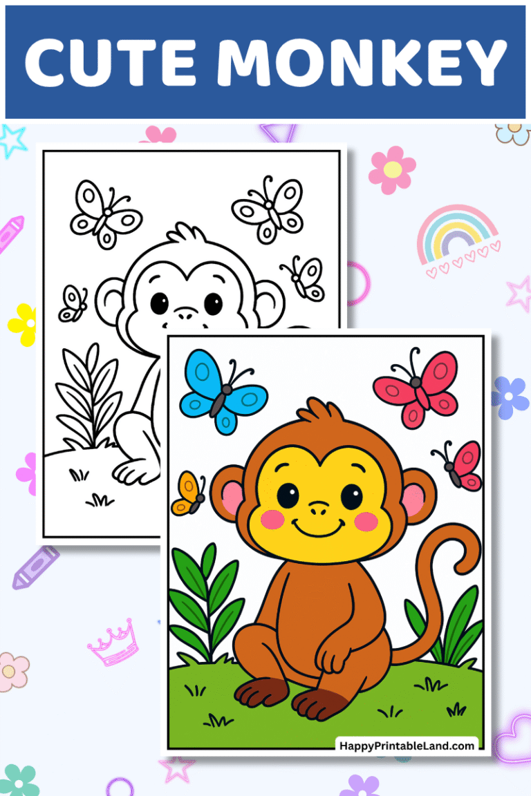 🐵 Monkey Coloring Pages – Silly monkeys, including winter & Christmas adventures.