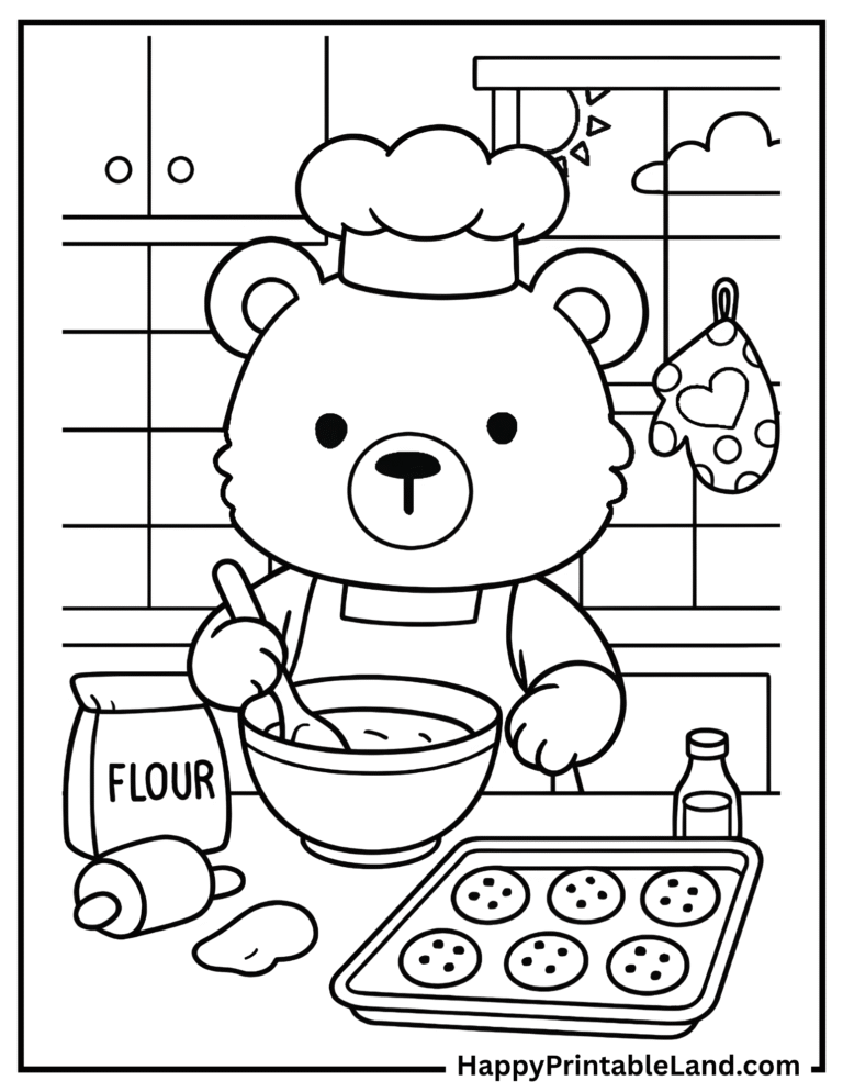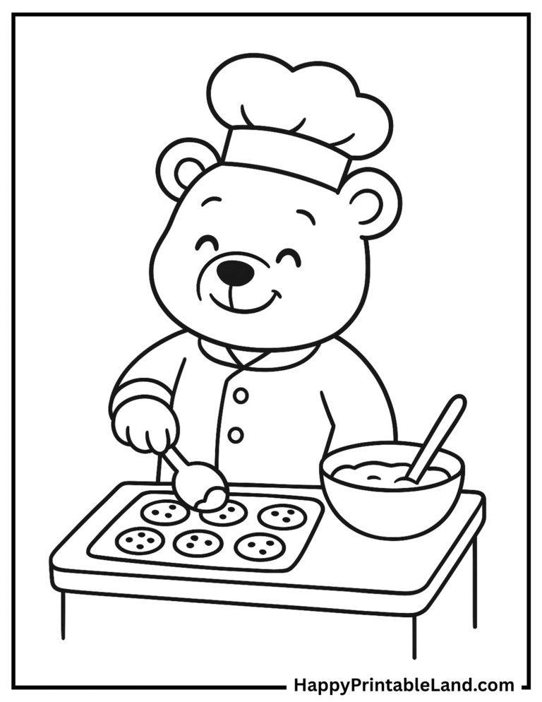 Toddlers & Preschoolers (Ages 3–5): Easy, bold outlines of cuddly cartoon bears.