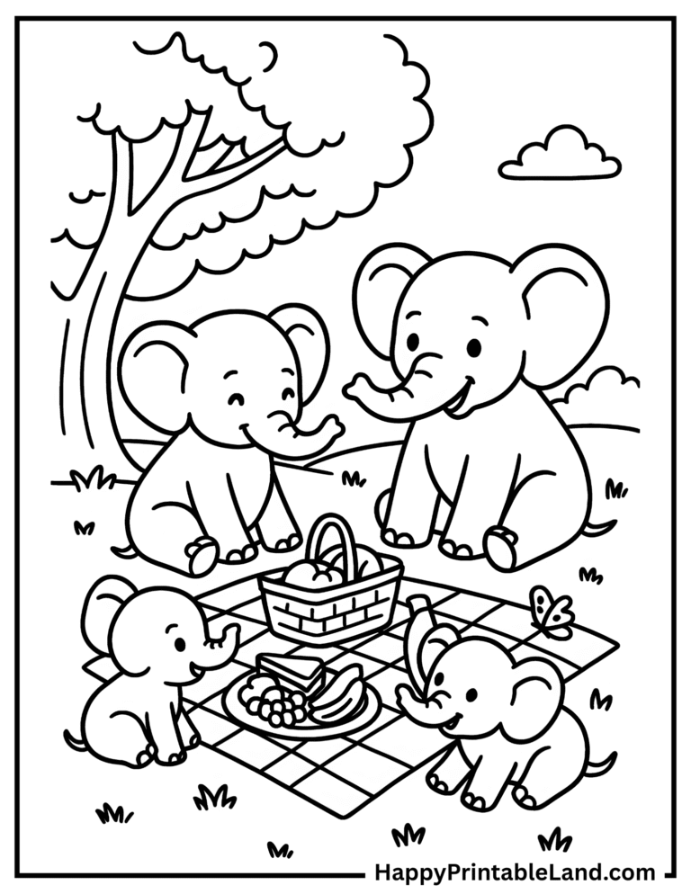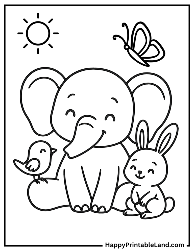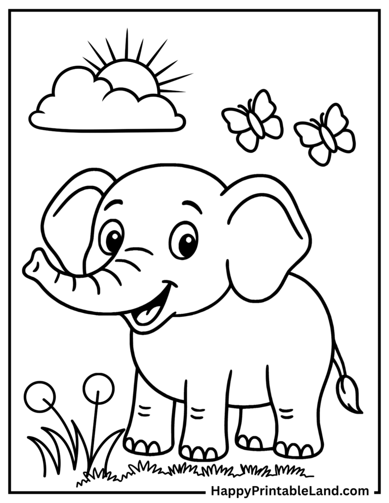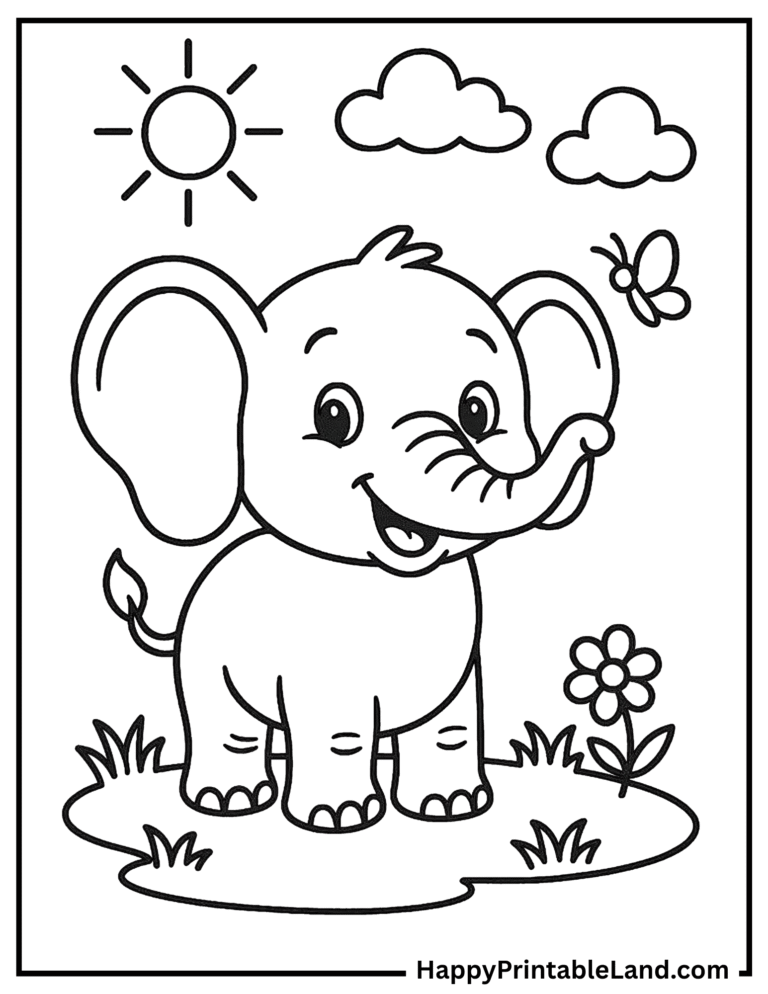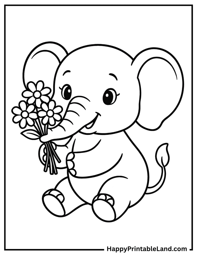 Toddlers & Preschoolers (Ages 3–5): Large, simple outlines of adorable elephants for easy coloring.