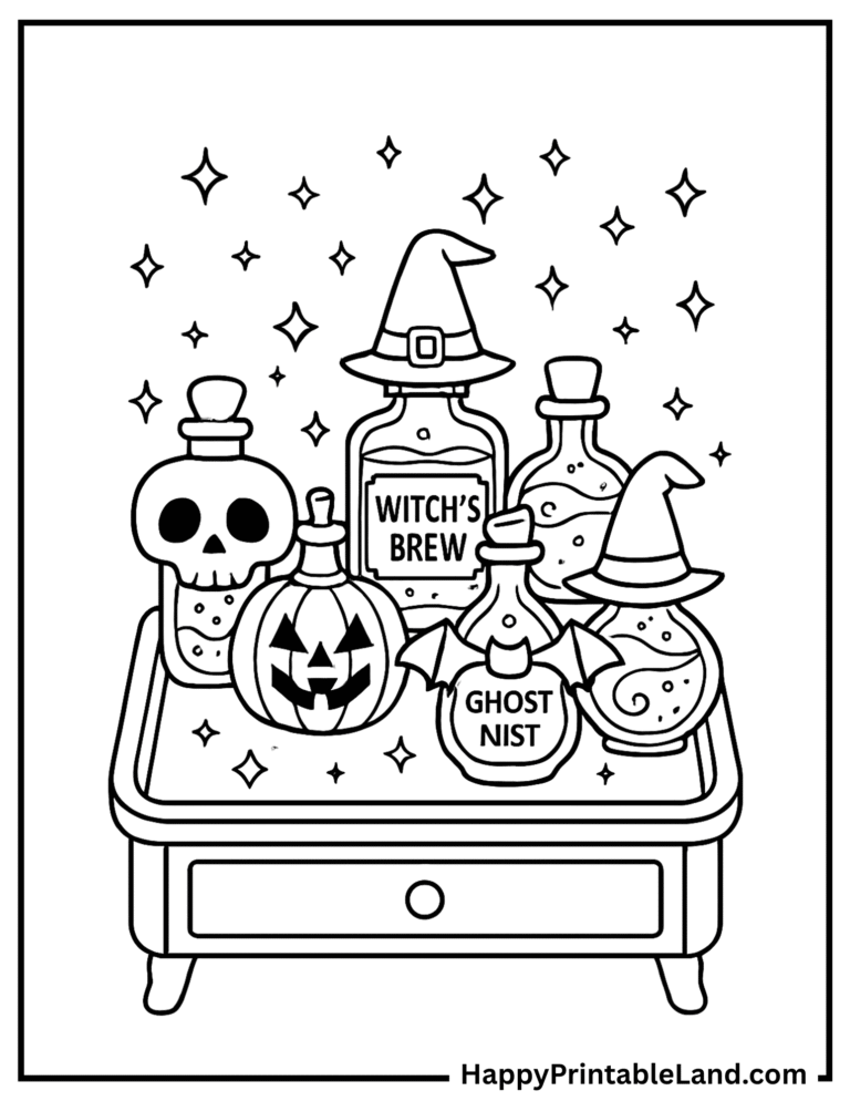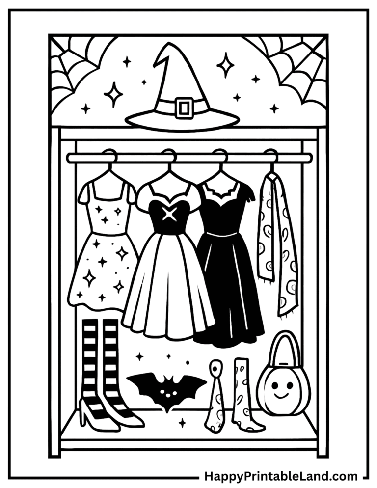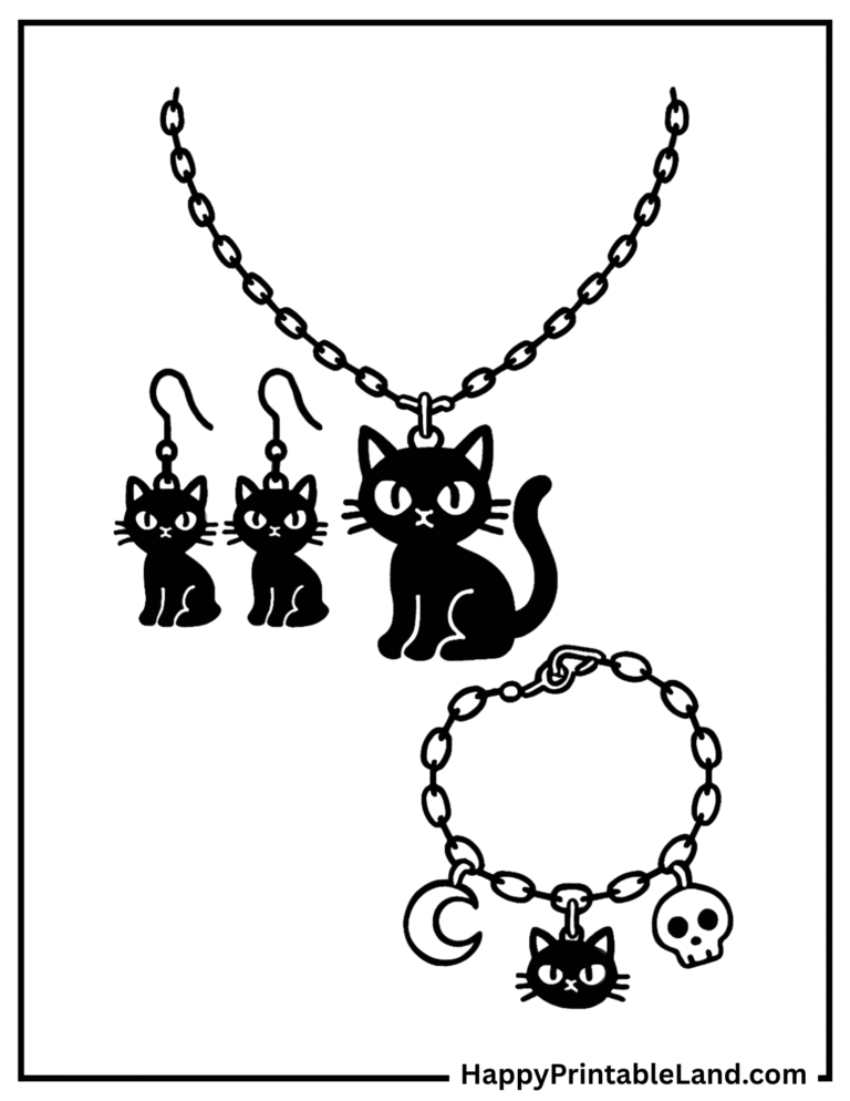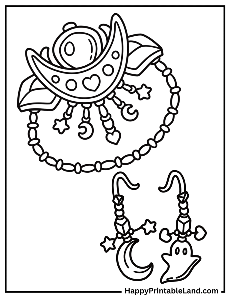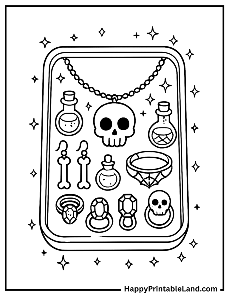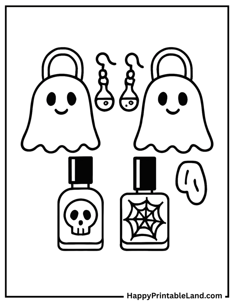 These spooky accessory coloring sheets are designed with bold outlines and fun details, making them ideal for preschoolers, older kids, and even teens who enjoy creative, Halloween-themed art.