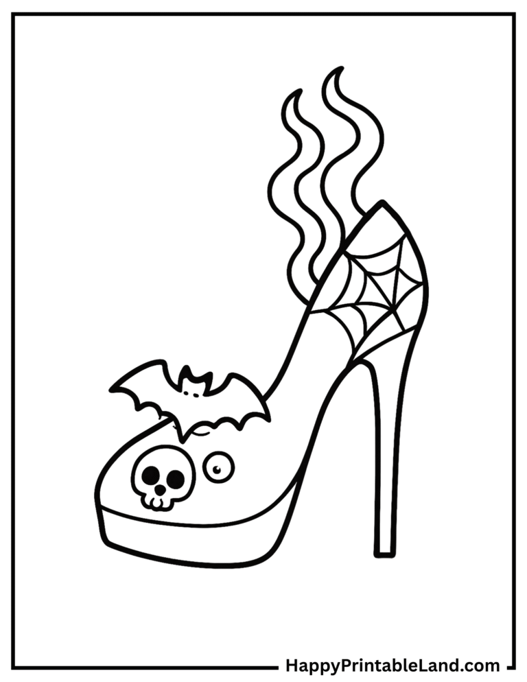 Step into the stylish side of Halloween with our Spooky Fashion Coloring Pages — a free printable collection featuring eerie accessories and glam designs with a spooky twist. From ghostly perfume bottles and bat-shaped sunglasses to creepy handbags, skeleton jewelry, and haunted high heels, this set is perfect for kids (and stylish adults!) who love a little fashion with their fright.