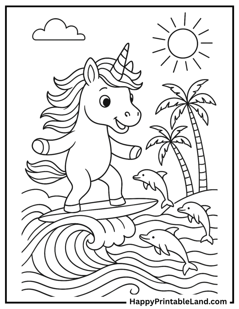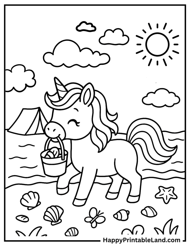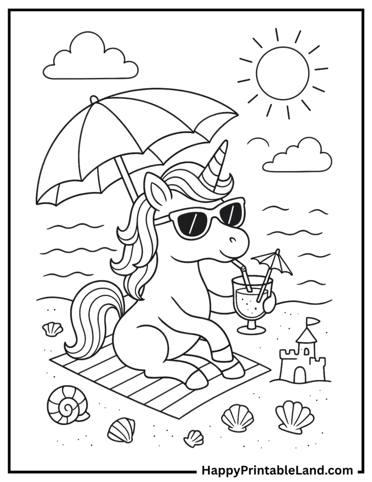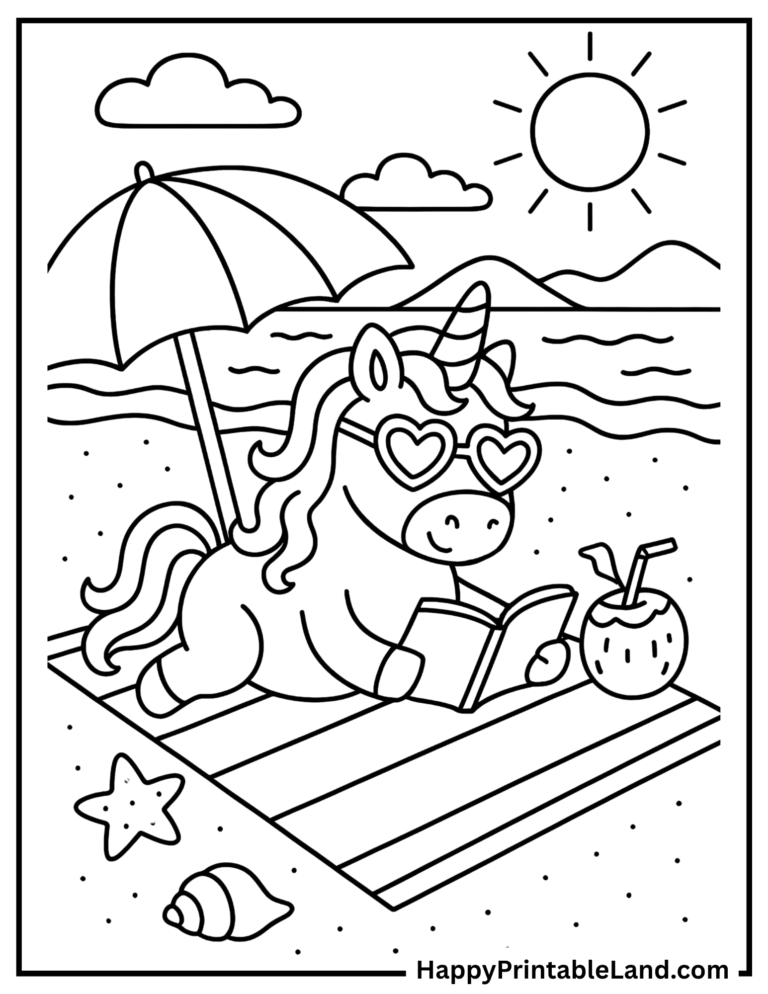 Step into a whimsical world with our free printable Unicorn Coloring Pages! This magical collection is filled with adorable unicorns, rainbow skies, fairy tale castles, and even summer fun unicorns enjoying the sun, beach, and poolside adventures. It’s perfect for kids who love fantasy, sparkles, and a touch of seasonal fun.