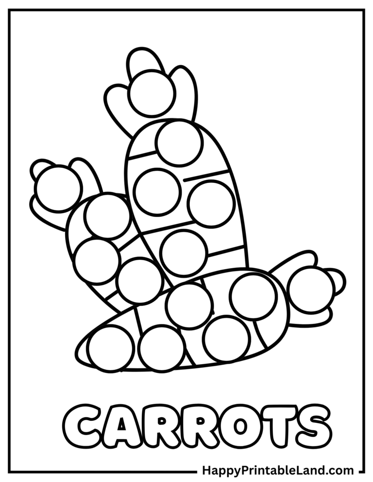 Let’s turn veggies into a colorful adventure! Our Vegetables Dot Marker Pages are the perfect way to introduce toddlers and preschoolers to healthy foods while keeping them entertained and learning. From crunchy carrots to leafy greens, each page is designed with bold vegetable shapes that are just waiting to be dotted and colored.
