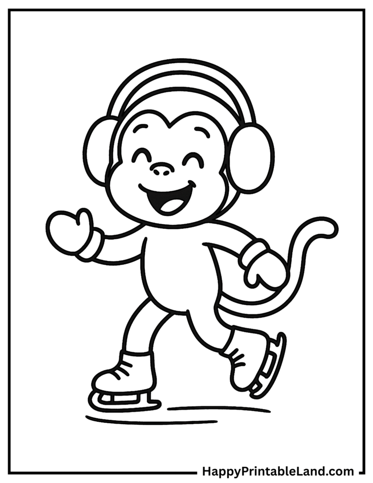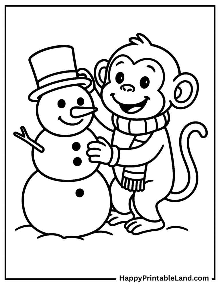 Toddlers & Preschoolers (Ages 3–5): Easy, bold outlines of monkeys in snowy scenes.