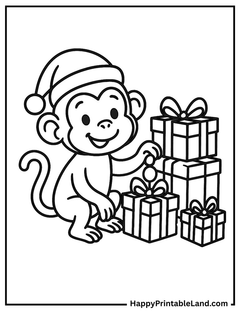 Download, print, and color your favorite Christmas monkey coloring sheets today—and let these playful primates swing into your holiday celebrations!
